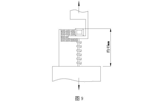 9.2.1.2、測試夾具主要尺寸:下部夾具寬 25mm,夾緊面齒形夾角 60°,節(jié)距 1.5mm,齒頂寬 0.2mm, 嚙合夾緊口到內(nèi)齒 3mm 處加工成低于齒面 0.5mm 的平面;上夾具為鉗口,端部折彎 90°,嚙合口后空余約 5mm 滿足鏈牙點(diǎn)高要求。